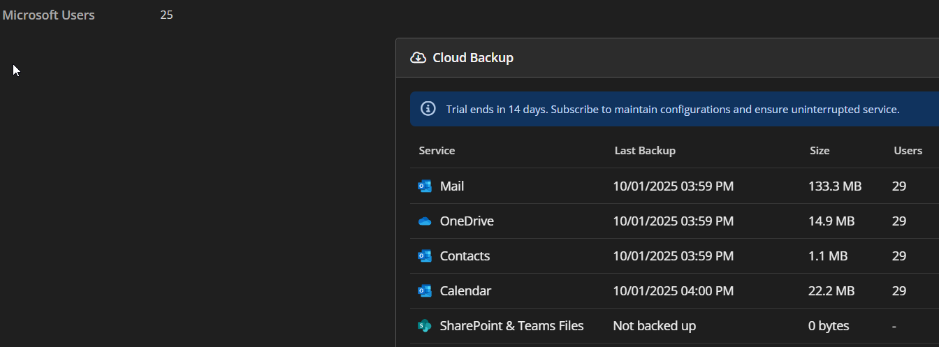 - Unlimited Microsoft 365 & Entra ID backup: Protect Exchange, SharePoint, OneDrive, Teams, and Entra ID identities and policies — twice daily, automatically.